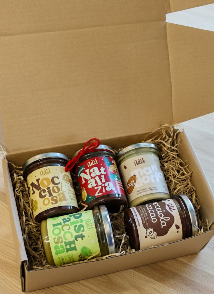 Dentro c’è tutto quello che rende Adèl… Adèl: le creme golose, quelle più “brave”, quelle pure che sanno solo di frutta secca.